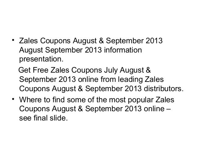 NEW Zales Discount Codes and Coupon Codes - October 2020 - MyCoupons Find the newest Zales.com discount codes & coupon codes for October 2020 at MyCoupons ©. Save up to 90% with discount codes, coupon codes, and promo codes from MyCoupons © daily.